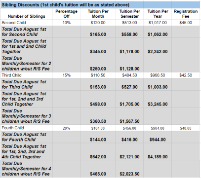 If you would like to pay tuition by the semester or by the year, a discount is included.